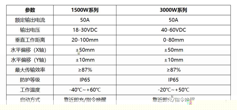 鲁渝能源针对产线搬运、仓储物流、重载运输等AGV/RGV场景,其1500W与3000W两款集成式大功率无线充电器,核心参数如下: